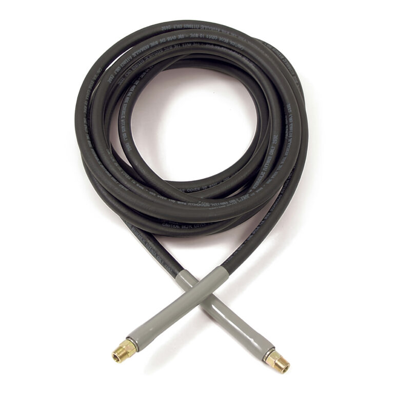 These single-wire braided steam hose units utilize a high-tensile strength wrap and both ends of each hose feature high-temperature bend restrictors, allowing for an extremely strong yet flexible steam hose. The Goodyear high pressure steam hose can operate at pressures of up to 3000 PSI when the water temperature being used is at 250°F or below. They will also function as steam hose lines at up to 325°F when pressures are at 350 PSI or less. All are fitted with 3/8″ MPT solid connectors at both ends. Swivel ends are NOT available.