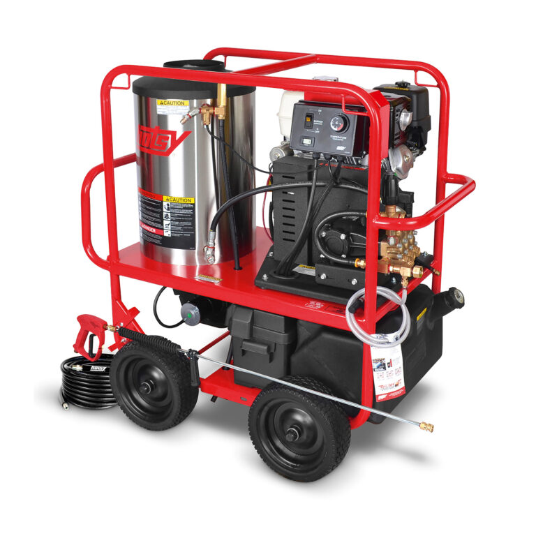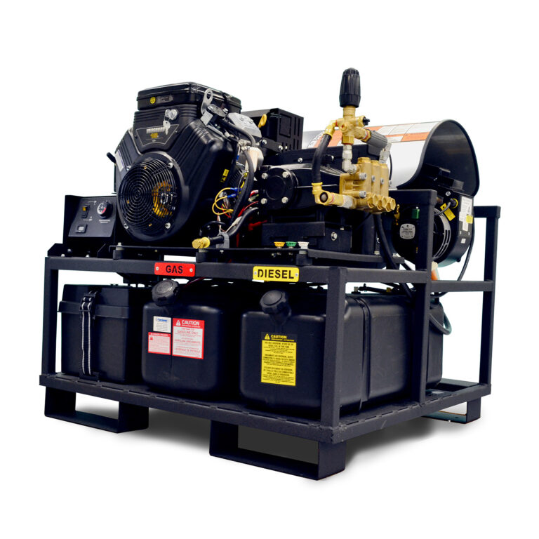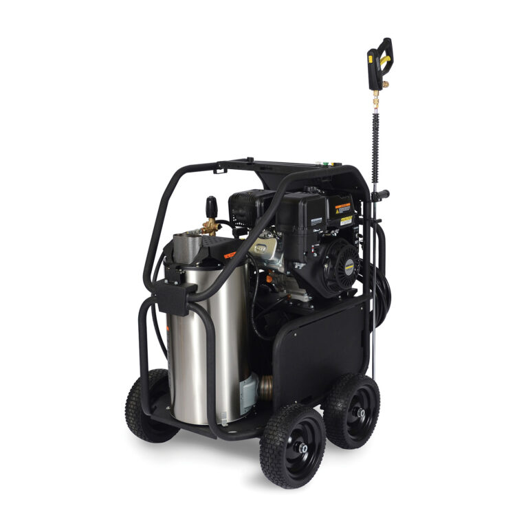 All gas-powered hot water units are designed to be transported via truck or trailer for those who work on remote or mobile job sites. Skid frame, flat-free tire, or caster wheel hot water pressure washer options are available depending on your transportation requirements.