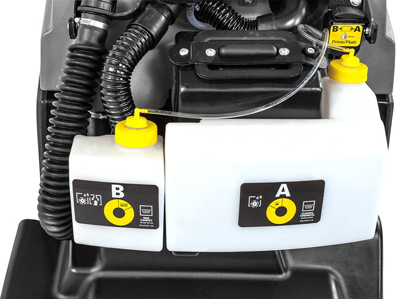 Several uses from one machine, the Commodore™ DUO is the pragmatic choice. With just the turn of a switch, easily change from extraction to interim cleaning. Make room for more storage by replacing two machines with one, or improve your cleaning process by adding productive interim cleaning to the mix. Interim cleaning extends the time between scheduled deep extractions and improves your carpets appearance. This machine operates at only 63 dBA which is perfect for daytime cleaning.