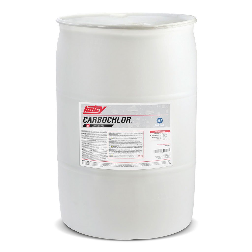 Chlorinated for extra punch, Carbochlor is a special emulsifying formula with high powered bleach for food processing plants. Excellent on tough odors, stains, dirt, oils and fats left behind on equipment, floors, and walls. NSF Registered for use in federally inspected food plants.