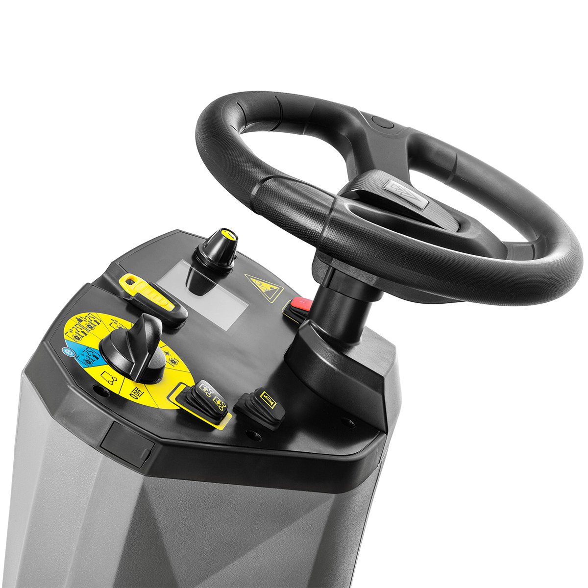 The ride-on B 75/110 R Bp scrubber is the most updated and compact scrubber in our product line-up. With outstanding suction performance including an all-new aluminum, die cast squeegee, you’ll have less moisture left behind. Big bumper wheels on the brand-new die cast brush head will help keep corners and walls free of unwanted marks. This also means easier maintenance and operation. With speed-dependent water supply, you’ll save water and detergents for when you need them most.
