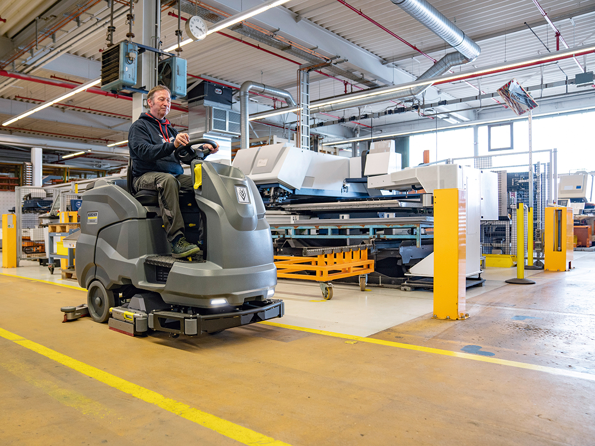 Equipped with a powerful, latest-generation, die-cast aluminum squeegee, and a brush head with a 34 inch working path, the B 200 R Bp impresses with outstanding cleaning results. This scrubber has exceptional suction performance, setting a new benchmark in the industry with 50% less residual moisture left on the floors, which means the floors dry even faster. And it is also extremely easy and safe to use thanks in part to the large, color display and the patented KIK key system, which can help rule out operator errors. The scrubber also comes with the auto-fill function for quickly filling the 53 gallon freshwater tank, as well as the automatic tank rinsing system, which makes it convenient to clean the waste water tank. A daytime running light comes as standard for improved visibility and the B 200 R Bp has steel impact protection to protect against damage.
