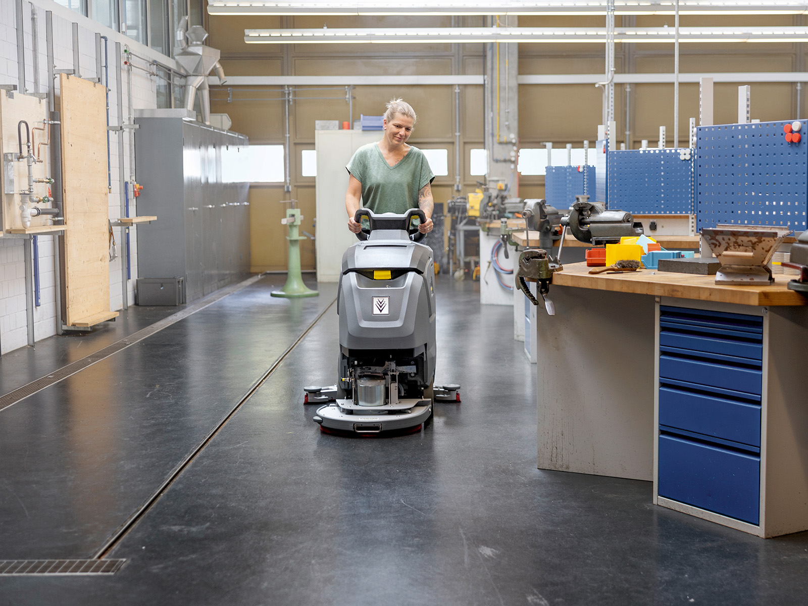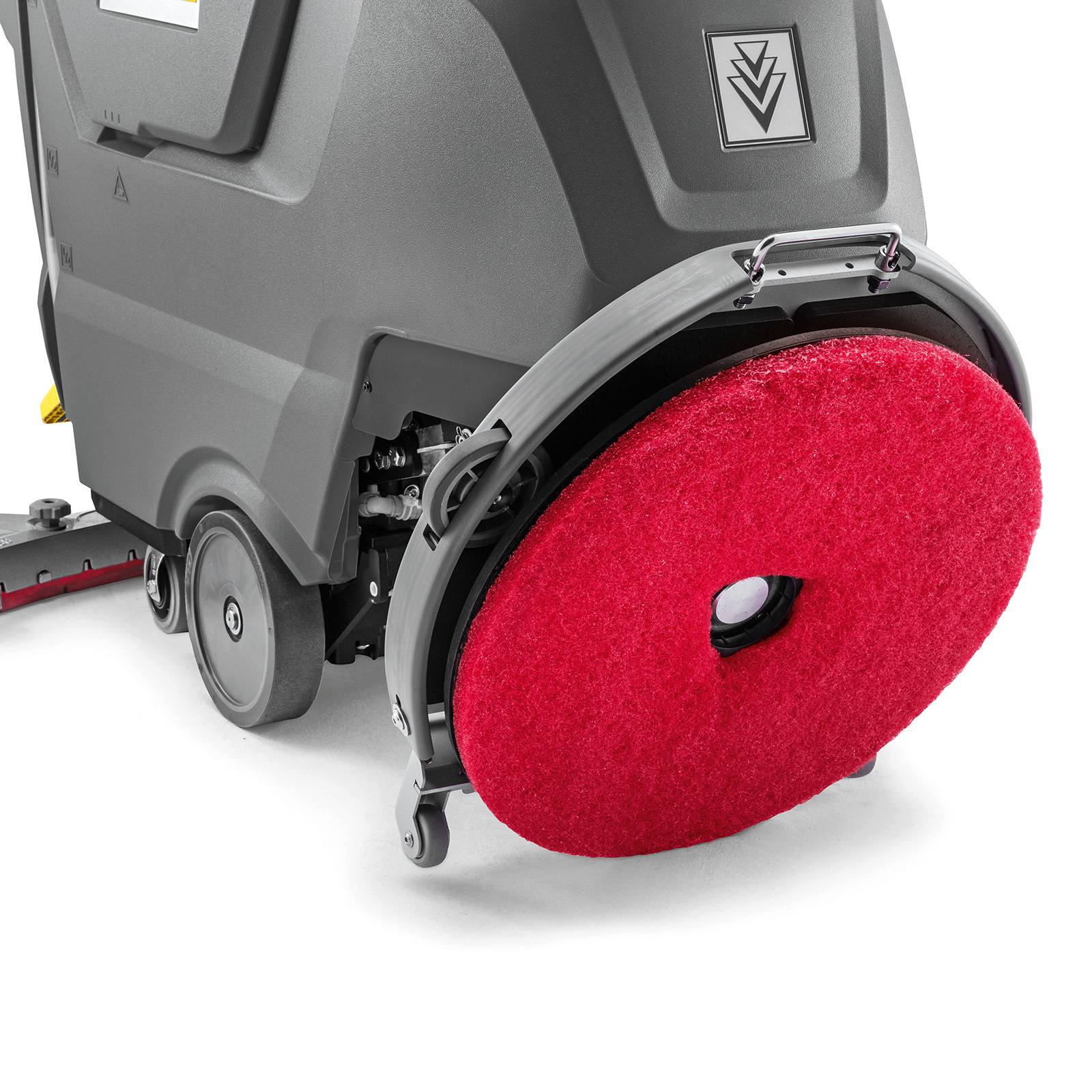 The B 50 W Bp walk-behind scrubber is the ideal companion for fast and efficient wet cleaning of floors and hard surfaces. It delivers cutting-edge cleaning technology in a slim design. The B 50 W sets new standards, with its reworked design and power units ensuring impeccable cleaning results over an area of up to 18,200 square feet. The machine can be powered by a choice of AGM or Lithium batteries. Easy to operate, quiet and efficient, the B 50 W is the perfect companion for real pros. The brush head and squeegee assembly are made from cast aluminum, making the walk-behind machine extremely durable and sturdy. The parabolic squeegee ensures perfect suction, even on uneven surfaces and in tight turns. The R 55 cylindrical brush head ensures thorough and powerful cleaning – especially on textured surfaces. The auto-rinse function enables contact-free cleaning of the dirty water tank, and topping up the freshwater tank is a breeze with the universal filling hose, allowing easy access to fresh water from any tap.
