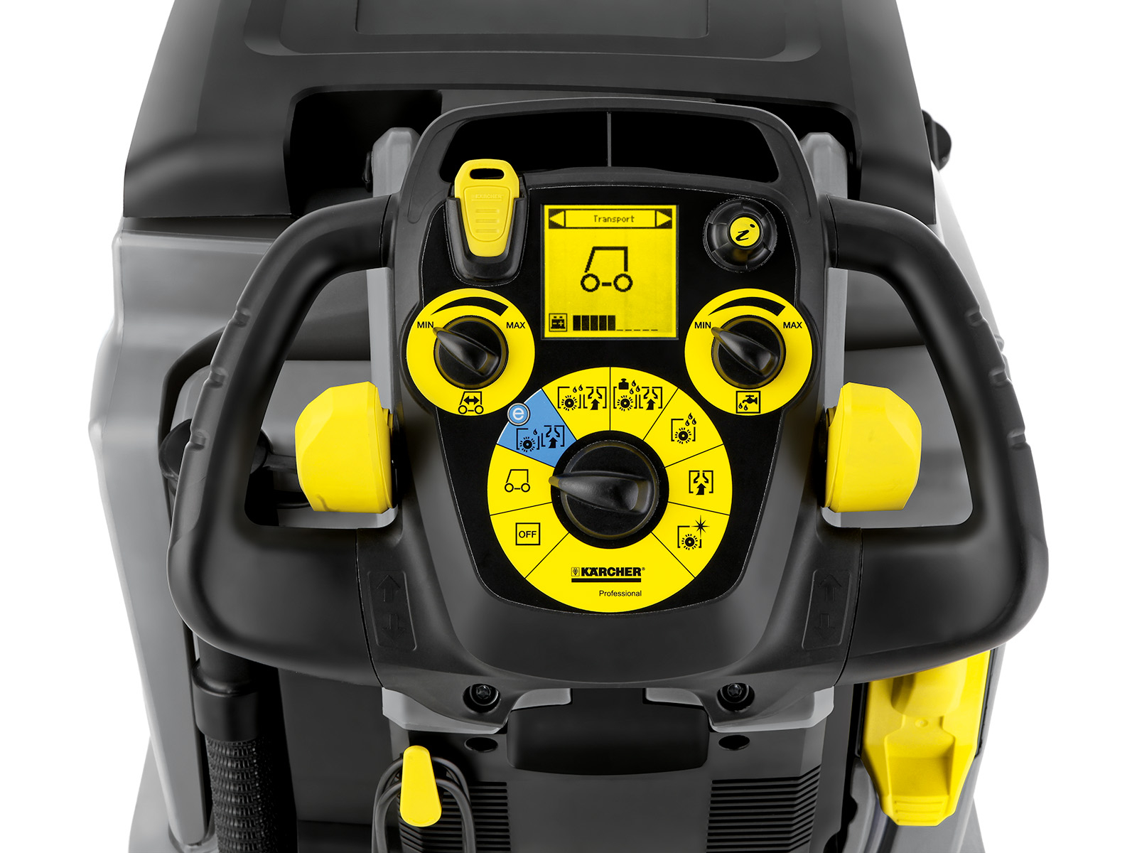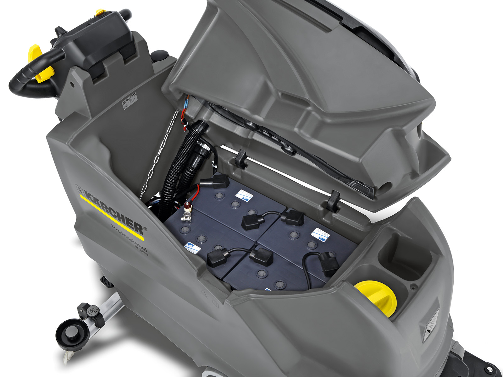 The B 80 W BP scrubbers cover a lot of area quickly, but are still easily maneuverable. They feature a robust, interchangeable, maintenance-friendly cylindrical scrub deck. Karcher Fleet comes pre-installed on these machines to provide you with complete visibility of your machine.