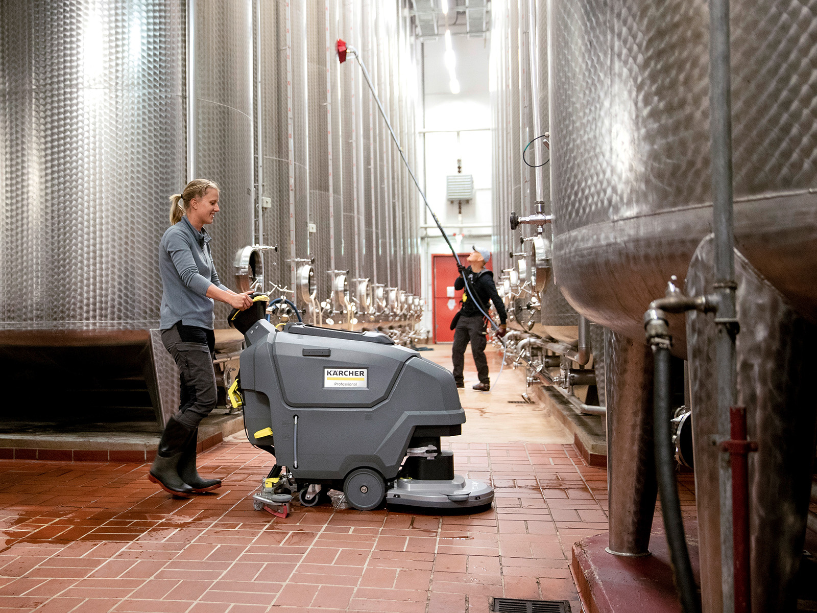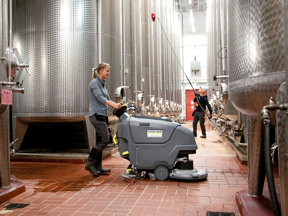 Our battery-powered walk-behind scrubber BD 50/55 W Classic Bp impresses with robust and long-lasting components such as the disc brush head and the squeegee (33.5-inch) made from high-quality aluminum 59 lb. brush contact pressure, 14.5-gallon tanks and 20-inch working width ensure top-class results on up to 21,500 ft² per hour maintenance cleaning, e.g., in public buildings, retail, the health sector or in industry. The very compact design, the comfortable four-wheel system, and the support from the integrated traction drive enable an excellent overview of the areas to be cleaned, very good maneuverability, and long, fatigue-free applications. This is why our building service contractors appreciate the user-friendly and versatile BD 50/55 W Classic Bp in daily cleaning applications.