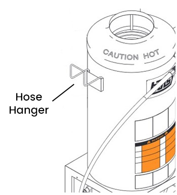 This Hotsy Hose Hanger requires no screws or bolts to mount as it it designed to slide easily into the stainless steel hose hanger sleeve welded to the coil wrap.
