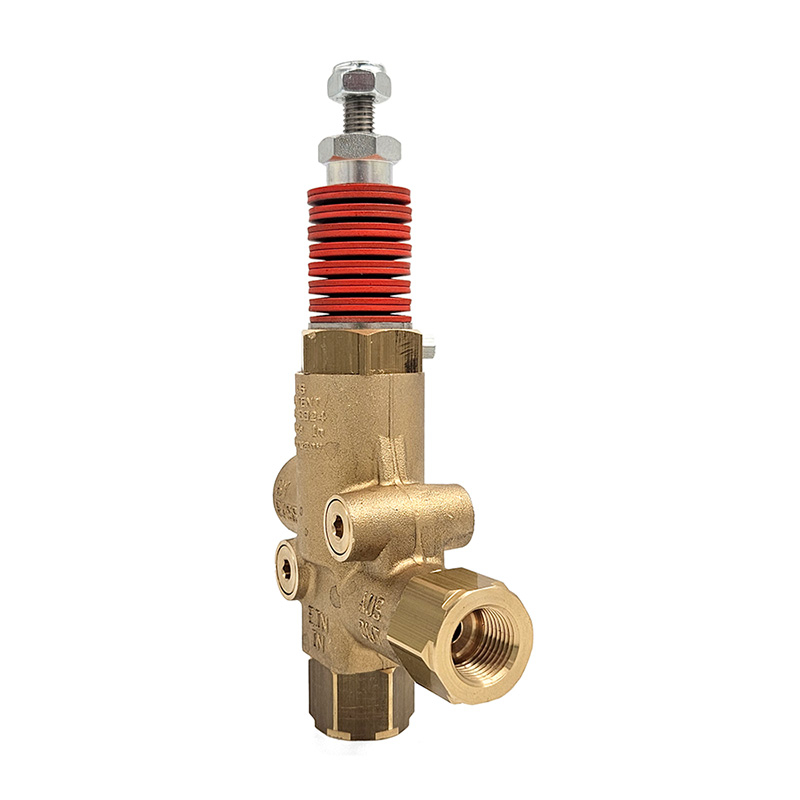 This Giant Pressure Actuated Unloader Valve features a forged-brass body and stainless steel internals with Bellville spring washers that minimize spikes. It is rated for 375-2400 PSI and 13.0 GPM.