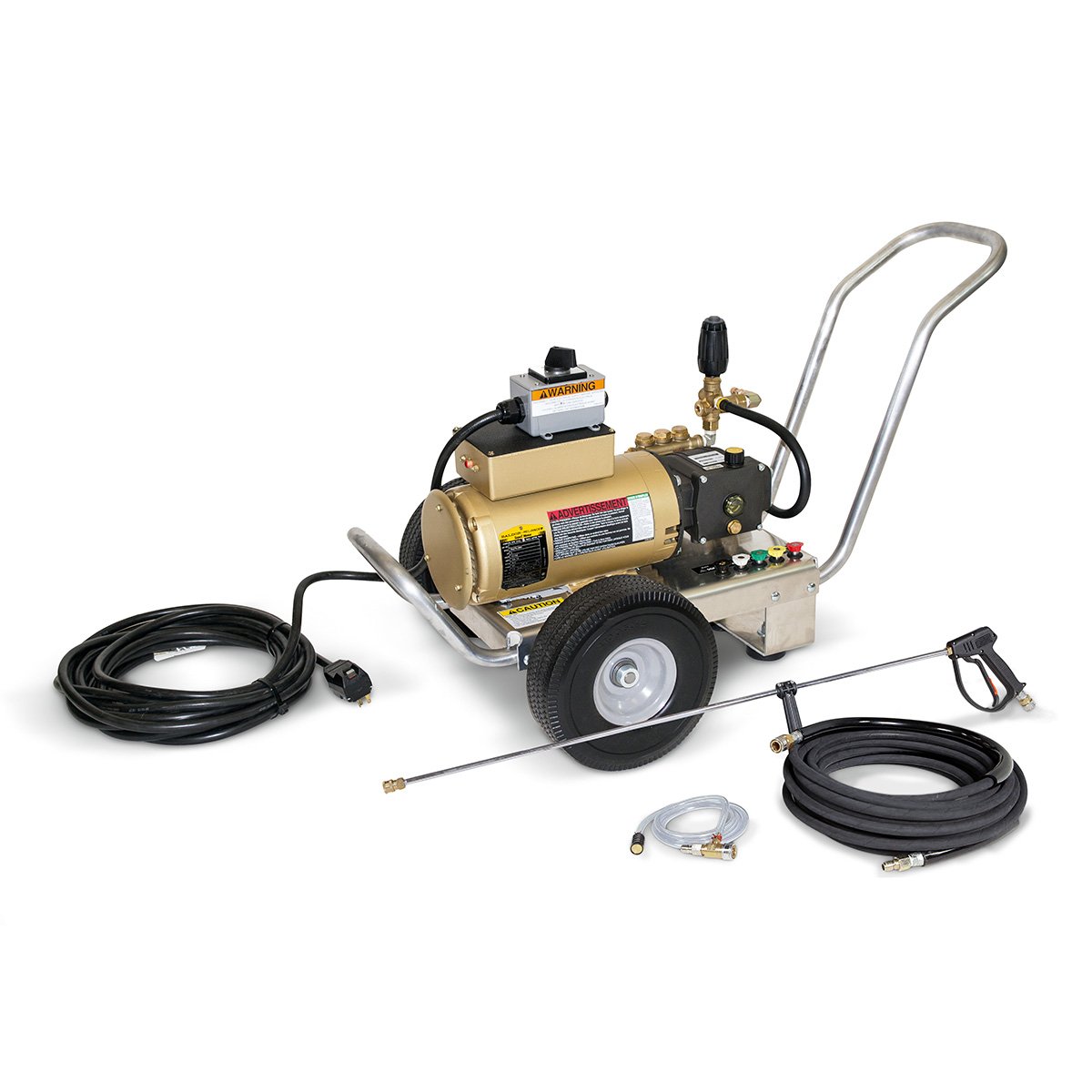 The HD Series electric carts are corrosion-resistant aluminum cold water pressure washers that easily convert from a cart to a skid for maximum cleaning versatility. Low profile handle and compact footprint. Includes bypass loop for additional pump protection.