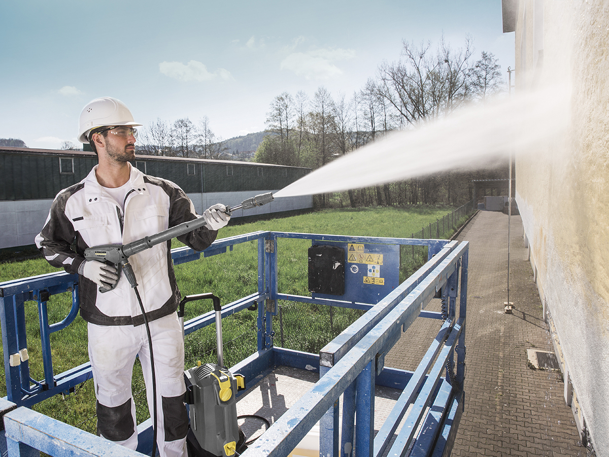 The HD Compact Class cold water pressure washer offers maximum portability, maneuverability and smart features. It can be stored, transported and operated in the vertical and horizontal position, and at 55.6 lbs, this professionally built unit can easily be moved by one person in and out of vehicles and around a cleaning site. It also includes storage options for accessories.