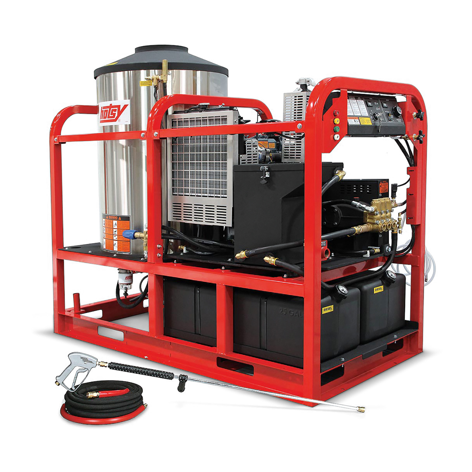 The Super Skid HSS Series is by far, the largest and most powerful of Hotsy’s hot water pressure washers. The Super Duty HSDS models feature a Hawk pump with lower RPM for long lasting durability; there’s literally nothing else on the market as robust, big & powerful. HSS models come standard with the reliable Hotsy triplex belt-driven high-pressure pump. Triple banded belt for more efficient power transmission. Models are powered by a 16 & 24 HP Kubota engines with electric start and all feature a 3/4-inch foil-backed insulated Schedule 80 heating coil with stainless steel skin and 5-year warranty. Two fuel tanks for longer operation, a high-efficiency Wayne burner and optional dual gun kit allows two users at one time.