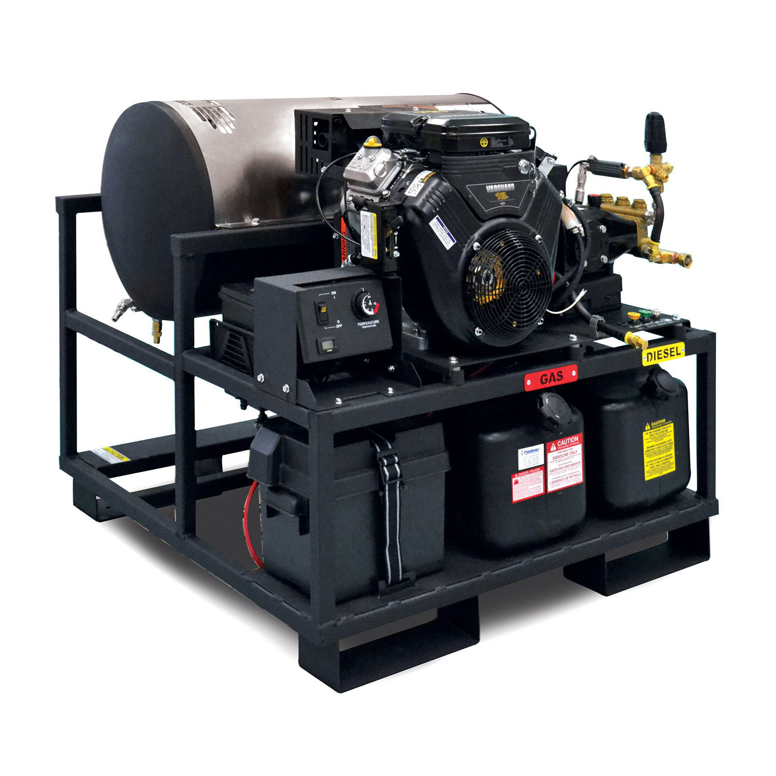 The LFT Skid brings hot water cleaning to remote locations. An affordable gas powered, diesel heated skid featuring a industrial-grade, high-pressure pump, hour meter, thermostatic burner control and a stainless-steel top-wrap. Certified to UL and CSA safety standards.