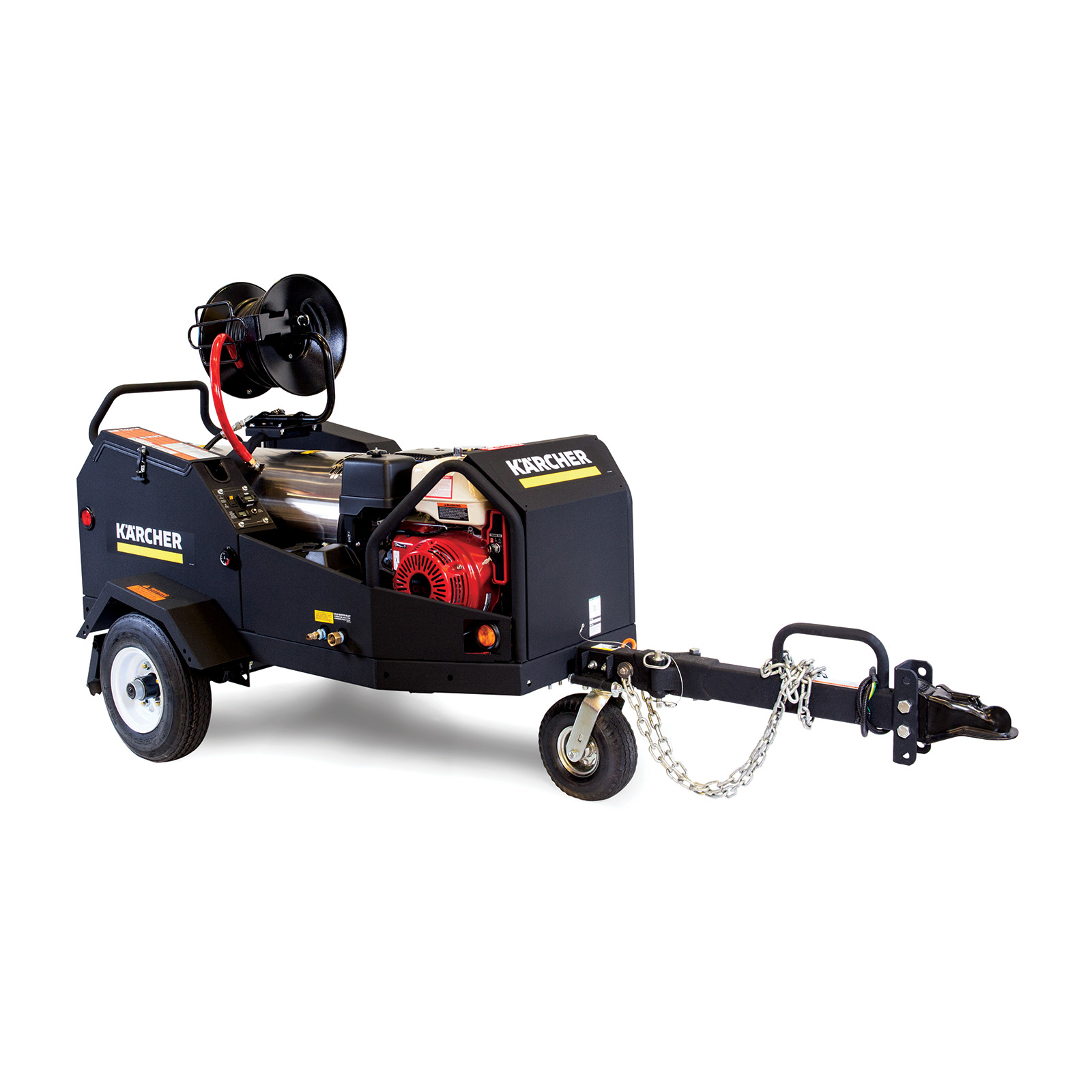 Ready to pick up and go at a moments notice, Karcher’s Tule Series HDS 3.5/40 Ge MT hot water pressure washer trailer provides the necessary cleaning power on virtually any job site which has a water source. Simply unhitch the Tule Series HDS 3.5/40 Ge MT and take the cleaning power where you need it most. The Tule Series trailer features a reliable Honda engine, 8 gallon diesel fuel tank, electric start with manual start backup and much more.