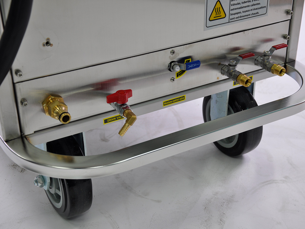 The Optima Steamer™ SE-II is the next step in dry steam technology, blending the function and convenience of the models leading up to this point with advancements in power, capabilities and features. This stainless steel electric model is our most innovative steam cleaning machine to date. Using the latest in steam technology, the Optima can quickly and effectively remove dirt, stains, grease, odors and eliminate harmful pathogens from a variety of surfaces without generating waste water runoff. The SE-II requires a 3-phase electric power supply and is available in three models: an 18K, 27K and 42K. ASME compliant models are also available.