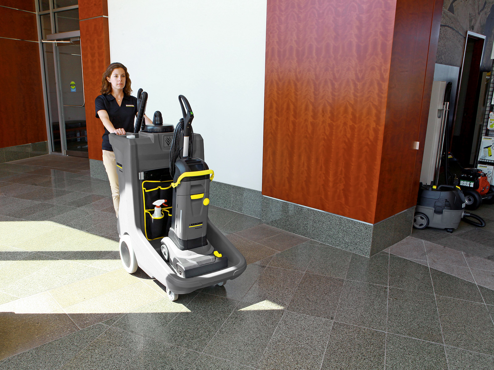 The Kärcher ECO! T11 Bp Liner CartVac is a professional mobile cleaning solution designed with an integrated vacuum. The clean design of the Kärcher CartVac allows for organized storage of cleaning supplies, providing a more professional appearance than today‘s janitorial carts.