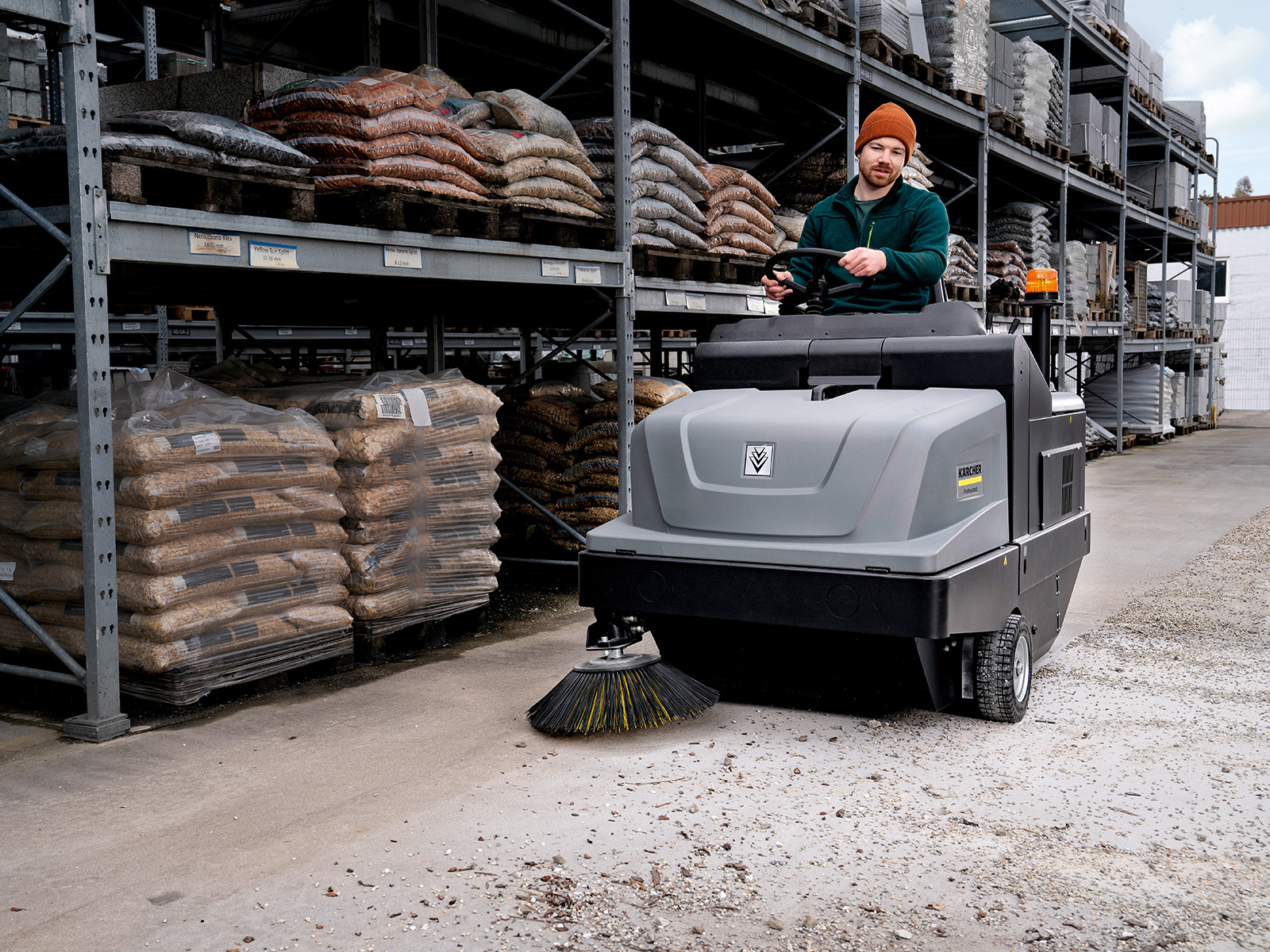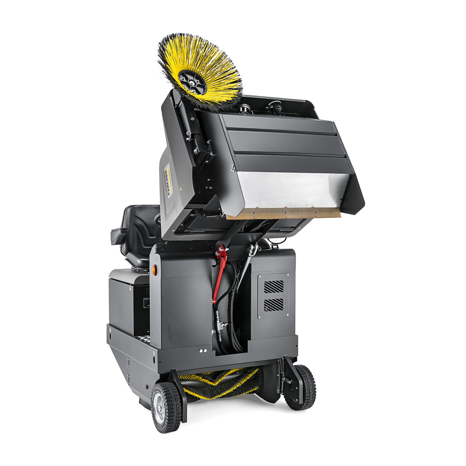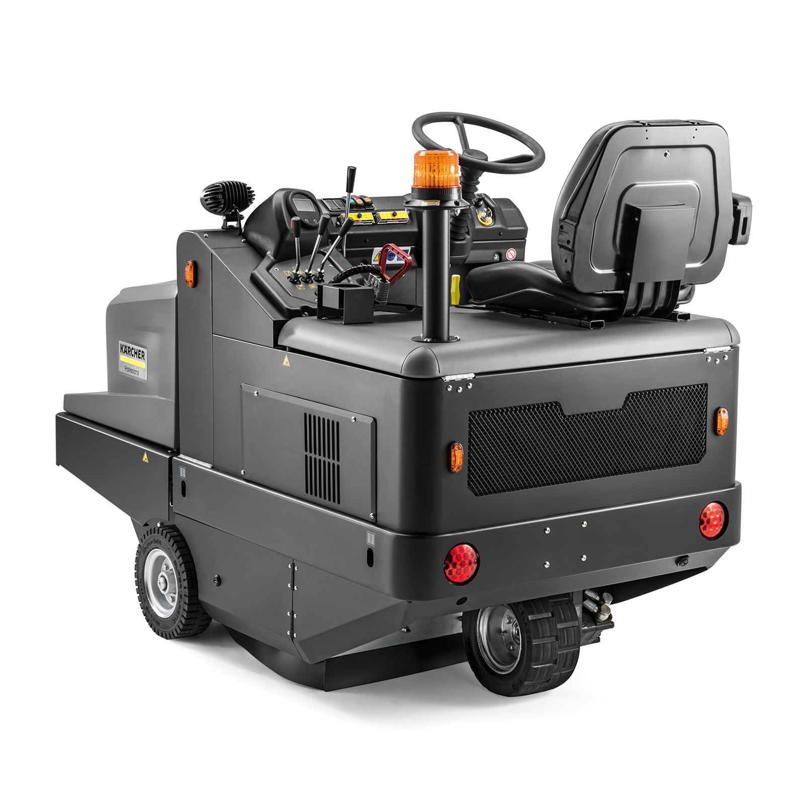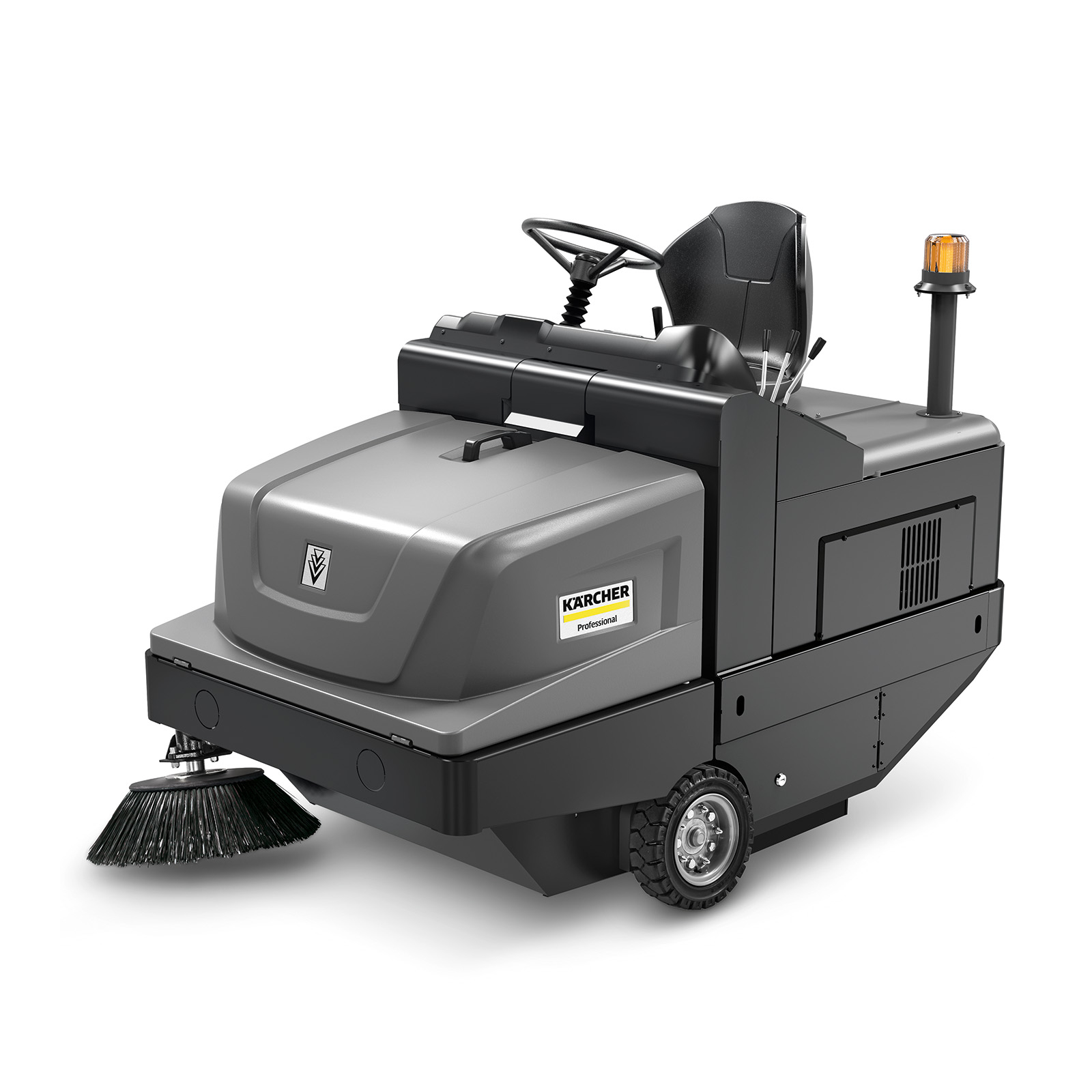 The KM 105/180 R Bp Classic is our new entry class Industrial sweeper for sweeping large amounts of dust and coarse dirt outdoors as well as heavily soiled indoor areas. This machine includes a robust steel frame and hydraulic traction drive in combination with other high-quality components. A reliable pocket filter system is integrated as standard, which is cleaned at frequent intervals via the automatic filter cleaning system. The KM 105/180 R Bp Classic is operated intuitively via levers, and includes easy-to-access components, making this a highly productive and user-friendly machine. It delivers excellent cleaning performance and is easy to service, making this ride-on sweeper a great addition to your cleaning operation.
