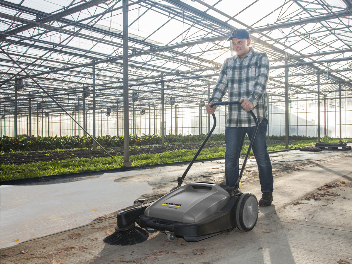 The KM 70/20 C manual sweeper makes cleaning surfaces effortless and virtually dust-free thanks to the filter, sweeping roller and side brush – whether indoors or outside. The area performance is 7 times higher than with a broom. The sweeping roller can be adjusted in 6 steps and, in combination with the variable side brushes, achieves an optimal cleaning result on different floors. A height adjustable push handle provides ergonomic operation for the intended user. The Home Base system allows for carrying additional items such as a waste can, to dispose of dust, dirt, debris and trash in one step. When the work is done, the KM 70/20 C can be stored in a space-saving manner in its parking position.