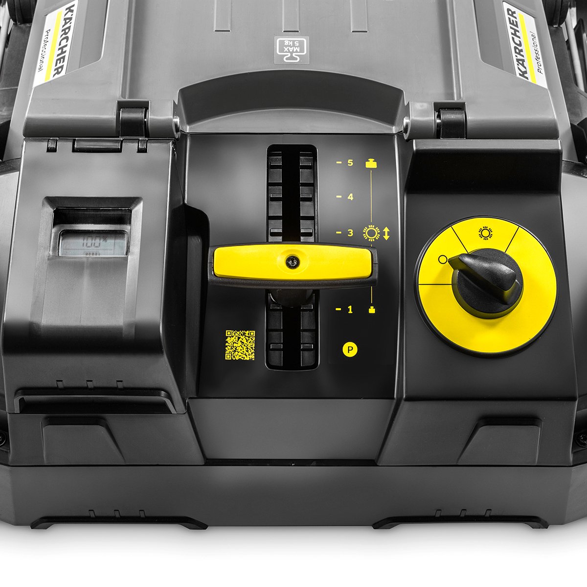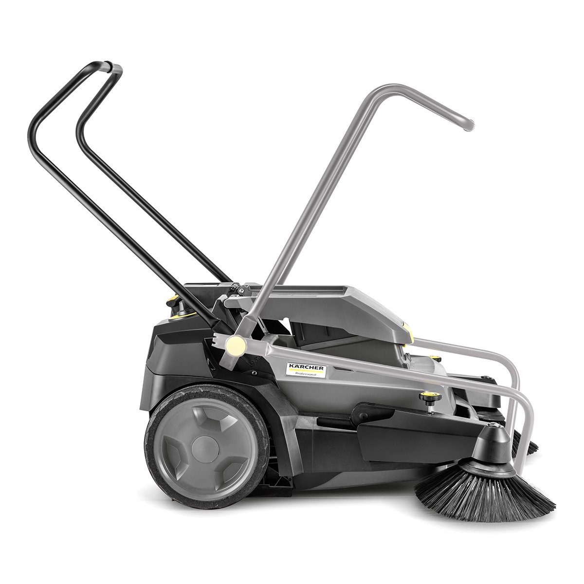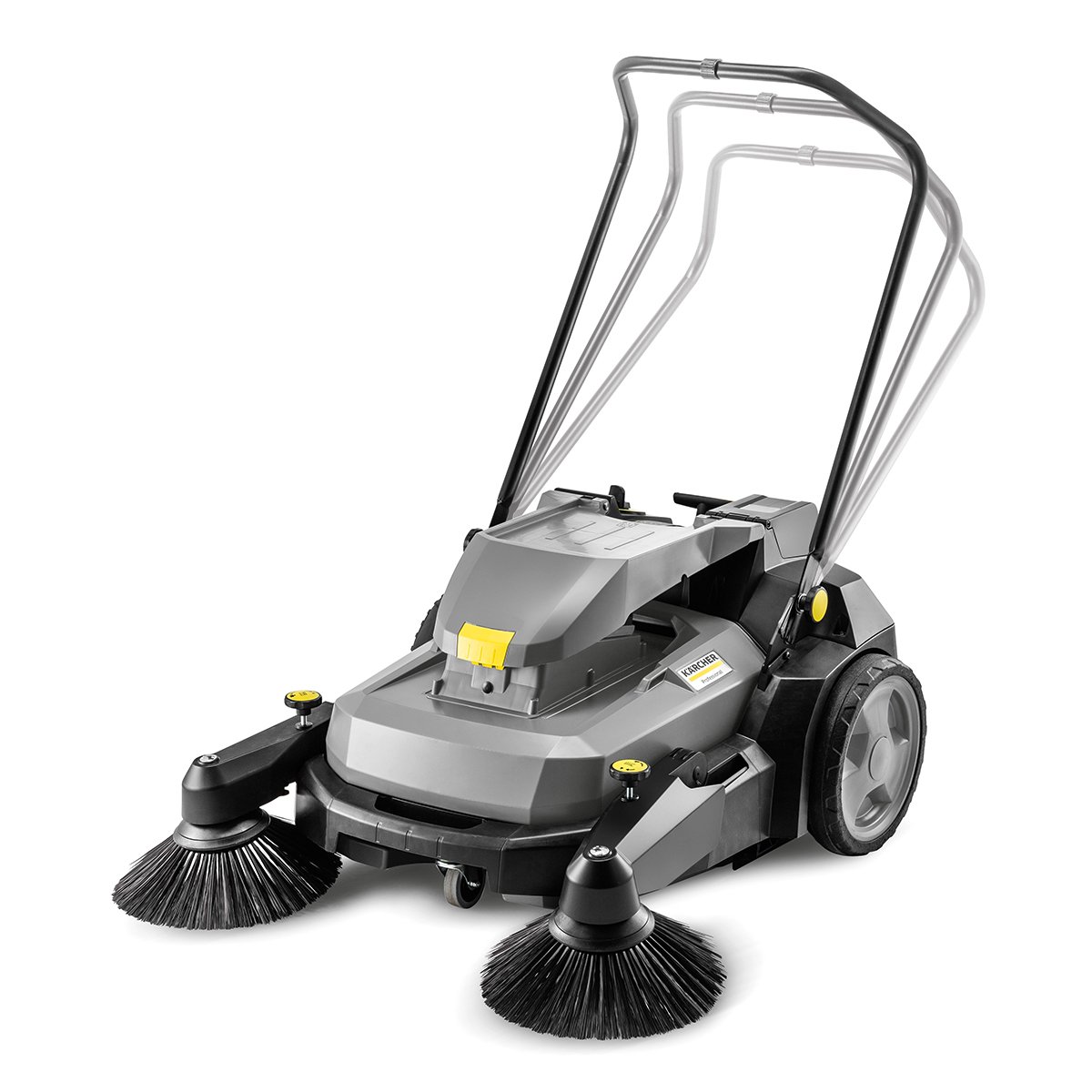 The KM 70/30 C battery powered sweeper is a highly efficient solution for cleaning both indoor and outdoor hard surfaces. Powered by a battery-operated main broom, side brush, and dust fan, this sweeper offers enhanced working comfort. With minimal effort required, users can effortlessly clean corners and hard-to-reach areas. The flat pleated filter with active suction effectively reduces dust generation, ensuring a clean working environment even when dealing with large quantities of fine dust. The main broom provides six adjustable stages, allowing for customizable cleaning performance on various surfaces. Additionally, the flat top conveniently accommodates additional equipment such as buckets and small tools. Maintenance is a breeze, as no tools are required to change the side brush and filter. Powered by the 36V Kärcher Battery Power+ platform, this sweeper delivers reliable power in any situation.